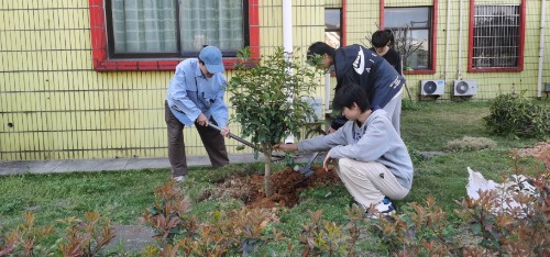 植树现场,热火朝天、春意浓浓。刘书记带头参与,率领大家按照指定区域进行分片栽植。活动中,大家分工协作,相互配合,搬运树苗、挥锹挖坑、栽种树苗,一片挥锹植绿的繁忙景象,为早春的校园增添了几许新绿,萌动着春天的生机与活力。